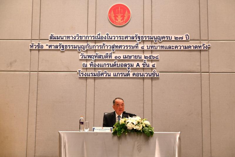 เมื่อวันพฤหัสบดีที่ ๑๐ เมษายน ๒๕๖๘ เวลา ๐๙.๐๐ น. ศาสตราจารย์ ดร.นครินทร์ เมฆไตรรัตน์ ประธานศาลรัฐธรรมนูญ ให้เกียรติเป็นประธานในพิธีเปิดการสัมมนาทางวิชาการเนื่องในวาระศาลรัฐธรรมนูญ ครบ ๒๗ ปี หัวข้อ "ศาลรัฐธรรมนูญกับการก้าวสู่ทศวรรษที่ ๔ บทบาทและความคาดหวัง” โดยมี คณะตุลาการศาลรัฐธรรมนูญ พร้อมด้วยคณะผู้สนับสนุนการปฏิบัติงานของคณะตุลาการศาลรัฐธรรมนูญ คณะผู้บริหารสำนักงานศาลรัฐธรรมนูญ บุคลากรสำนักงานศาลรัฐธรรมนูญ คณะผู้แทนจากหน่วยงานต่าง ๆ ตลอดจนสื่อมวลชน เข้าร่วมเป็นเกียรติในพิธีเปิดฯ และเข้าร่วมการสัมมนาทางวิชาการฯ ณ โรงแรมอัศวิน แกรนด์ คอนเวนชั่น กรุงเทพมหานคร