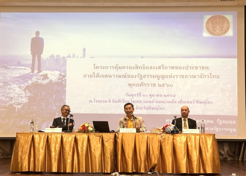 โดยวันที่ ๑๐ ตุลาคม ๒๕๖๘ ศาสตราจารย์ ดร. นครินทร์ เมฆไตรรัตน์ ประธานศาลรัฐธรรมนูญ ให้เกียรติเป็นประธานในพิธีเปิดโครงการคุ้มครองสิทธิและเสรีภาพของประชาชนภายใต้เจตนารมณ์ของรัฐธรรมนูญแห่งราชอาณาจักรไทย พุทธศักราช ๒๕๖๐ ในการนี้ นายอุดม สิทธิวิรัชธรรม ตุลาการศาลรัฐธรรมนูญ นายจิรนิติ หะวานนท์ ตุลาการศาลรัฐธรรมนูญ นายอุดม รัฐอมฤต ตุลาการศาลรัฐธรรมนูญ นายสุเมธ รอยกุลเจริญ ตุลาการศาลรัฐธรรมนูญ และนายสราวุธ ทรงศิวิไล ตุลาการศาลรัฐธรรมนูญ พร้อมด้วยผู้บริหารสำนักงานศาลรัฐธรรมนูญ เข้าร่วมโครงการดังกล่าว โดยมีกิจกรรมประกอบด้วย การอภิปรายเรื่อง "ศาลรัฐธรรมนูญกับการคุ้มครองสิทธิและเสรีภาพของประชาชน" โดยศาสตราจารย์ ดร. อุดม รัฐอมฤต ตุลาการศาลรัฐธรรมนูญ และผู้ช่วยศาสตราจารย์ ดร.วีรวัฒน์ จันทโชติ ผู้เชี่ยวชาญประจำตุลาการศาลรัฐธรรมนูญ จากนั้นในช่วงบ่าย มีกิจกรรมคู่ขนานประกอบด้วย การ Workshop หัวข้อ "ทิศทางการส่งเสริมความรู้ด้านรัฐธรรมนูญสำหรับนักเรียนระดับมัธยมศึกษา” โดยศาสตราจารย์ ดร.อุดม รัฐอมฤต ตุลาการศาลรัฐธรรมนูญ ผู้ช่วยศาสตราจารย์ ดร.วีรวัฒน์ จันทโชติ ผู้เชี่ยวชาญประจำตุลาการศาลรัฐธรรมนูญ และนายยุทธกิจ เจียรสุวรรณภาส เลขานุการตุลาการศาลรัฐธรรมนูญ และการ Workshop หัวข้อ "สิทธิและเสรีภาพของประชาชนตามรัฐธรรมนูญ” โดยผู้ช่วยศาสตราจารย์ ดร. จักรกฤษณ์ สถาปนศิริ อาจารย์ประจำคณะนิติศาสตร์ มหาวิทยาลัยนเรศวร และนายปฐมพงษ์ คำเขียว ผู้อำนวยการสำนักคดี ๒ และคณะ พร้อมทั้งประกาศผลการแข่งขัน Workshop ของนักเรียน มอบรางวัลและเกียรติบัตรให้แก่ผู้เข้าร่วมโครงการดังกล่าว ณ โรงแรม ดิ อิมพีเรียล โฮเทล แอนด์ คอนเวนชั่น เซ็นเตอร์ จังหวัดพิษณุโลก