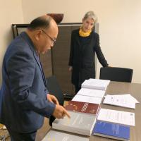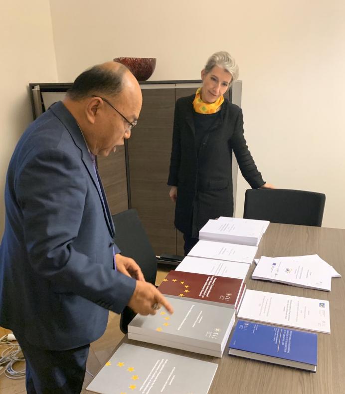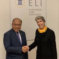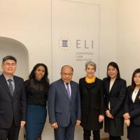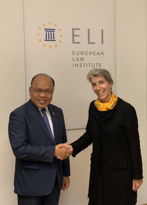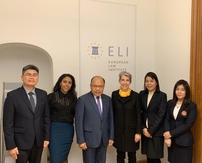 นายปัญญา อุดชาชน ตุลาการศาลรัฐธรรมนูญ นายบุญเสริม นาคสาร ผู้ทรงคุณวุฒิด้านบริหาร พร้อมด้วยข้าราชการสำนักงานศาลรัฐธรรมนูญ ประชุมร่วมกับ Professor Dr. Christiane WENDEHORST ประธานสถาบันกฎหมายยุโรป (The European Law Institute) ประเทศสาธารณรัฐออสเตรีย ในประเด็นเกี่ยวกับรัฐธรรมนูญ กระบวนการจัดทำกฎหมายยุโรปและกระบวนการจัดทำงานวิจัยสหภาพยุโรปด้านหลักนิติธรรม หลักประชาธิปไตยและหลักสิทธิมนุษยชน เมื่อวันที่ ๕ พฤศจิกายน ๒๕๖๒ ณ สถาบันกฏหมายยุโรป ประเทศสาธารณรัฐออสเตรีย |