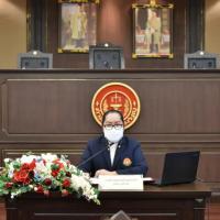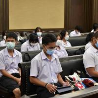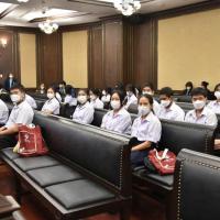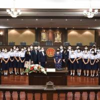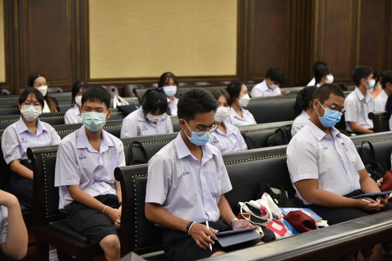 เมื่อวันที่ ๖ มกราคม ๒๕๖๖ นางพรทิภา ไสวสุวรรณวงศ์ เลขาธิการสำนักงานศาลรัฐธรรมนูญ มอบหมายให้ นางสาวร่มปรางค์ สวมประคำ ผู้เชี่ยวชาญด้านคดี กล่าวต้อนรับและบรรยายให้ความรู้ในเรื่อง "บทบาท หน้าที่และอำนาจของศาลรัฐธรรมนูญ การพิจารณาวินิจฉัยคดีของศาลรัฐธรรมนูญ” แก่คณะผู้ศึกษาดูงานจากโรงเรียนสวนกุหลาบวิทยาลัย นนทบุรี ในโครงสร้างการเรียนนิติศาสตร์เเละรัฐศาสตร์ ในรายวิชากฏหมายรัฐธรรมนูญ จำนวน ๓๔ คน ณ ห้องออกนั่งพิจารณาคดี ชั้น ๓ สำนักงานศาลรัฐธรรมนูญ อาคารราชบุรีดิเรกฤทธิ์ ศูนย์ราชการเฉลิมพระเกียรติ ๘๐ พรรษา ๕ ธันวาคม ๒๕๕๐ ถนนแจ้งวัฒนะ กรุงเทพมหานคร |