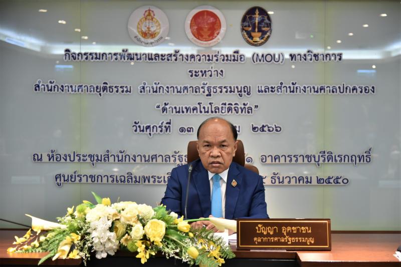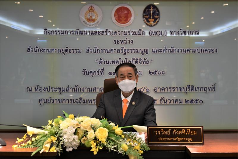 เมื่อวันที่ ๑๓ มกราคม ๒๕๖๖ นายวรวิทย์ กังศศิเทียม ประธานศาลรัฐธรรมนูญ ให้เกียรติเป็นประธานในพิธีเปิดกิจกรรมการพัฒนาและสร้างความร่วมมือ (MOU) ทางวิชาการ ระหว่างสำนักงานศาลยุติธรรม สำนักงานศาลรัฐธรรมนูญ และสำนักงานศาลปกครอง "ด้านเทคโนโลยีดิจิทัล” ในการนี้นายปัญญา อุดชาชน ตุลาการศาลรัฐธรรมนูญ นายอุดม สิทธิวิรัชธรรม ตุลาการศาลรัฐธรรมนูญ นายจิรนิติ หะวานนท์ ตุลาการศาลรัฐธรรมนูญ พร้อมด้วย นางพรทิภา ไสวสุวรรณวงศ์ เลขาธิการสำนักงานศาลรัฐธรรมนูญ ผู้บริหารสำนักงานศาลรัฐธรรมนูญ และบุคลากรสำนักงานศาลรัฐธรรมนูญ เข้าร่วมโครงการดังกล่าว จากนั้นมีการบรรยายพิเศษ ในหัวข้อ ยุทธศาสตร์ว่าด้วยความร่วมมือภายใต้หลักนิติธรรม โดยได้รับเกียรติจากนายปัญญา อุดชาชน ตุลาการศาลรัฐธรรมนูญ และมีการอภิปรายร่วมกัน เรื่อง การนำระบบงานคดีอิเล็กทรอนิกส์ (e-Filing and e-Service) กับการพัฒนากระบวนการยุติธรรม โดย นางสมฤดี ธัญญสิริ เลขาธิการสำนักงานศาลปกครอง นางพรทิภา ไสวสุวรรณวงศ์ เลขาธิการสำนักงานศาลรัฐธรรมนูญ และนายเผ่าพันธ์ ชอบน้ำตาล รองเลขาธิการสำนักงานศาลยุติธรรม ดำเนินการอภิปรายโดย นายอดิเทพ อุยยะพัฒน์ ผู้เชี่ยวชาญด้านคดี พร้อมทั้งมีการเยี่ยมชมศาลรัฐธรรมนูญ ณ ห้องออกนั่งพิจารณาคดี และห้องพิจารณาคดีของศาลรัฐธรรมนูญ (Court Room System)