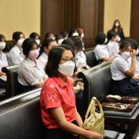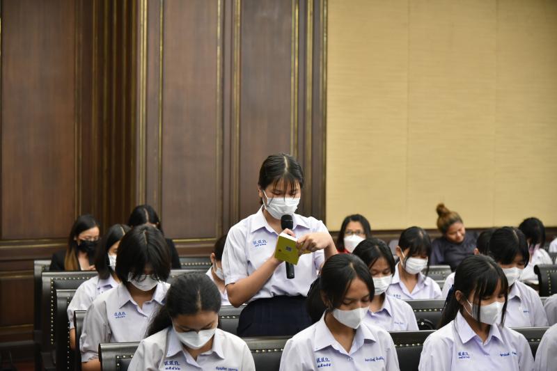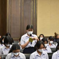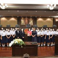 เมื่อวันที่ ๖ กุมภาพันธ์ ๒๕๖๖ นางพรทิภา ไสวสุวรรณวงศ์ เลขาธิการสำนักงานศาลรัฐธรรมนูญ มอบหมายให้ นางสาวสุวัชรี เทพหัสดิน ณ อยุธยา ผู้เชี่ยวชาญด้านคดี กล่าวต้อนรับเเละบรรยายให้ความรู้เรื่อง "บทบาท หน้าที่และอำนาจของศาลรัฐธรรมนูญ การพิจารณาวินิจฉัยคดีของศาลรัฐธรรมนูญ” แก่คณะผู้ศึกษาดูงานจากโรงเรียนสตรีสิริเกศ ห้องเรียนพิเศษนิติศาสตร์ – รัฐศาสตร์ จำนวน ๗๓ คน ณ ห้องออกนั่งพิจารณาคดี ชั้น ๓ สำนักงานศาลรัฐธรรมนูญ อาคารราชบุรีดิเรกฤทธิ์ ศูนย์ราชการเฉลิมพระเกียรติ ๘๐ พรรษา ๕ ธันวาคม ๒๕๕๐ ถนนแจ้งวัฒนะ กรุงเทพมหานคร |