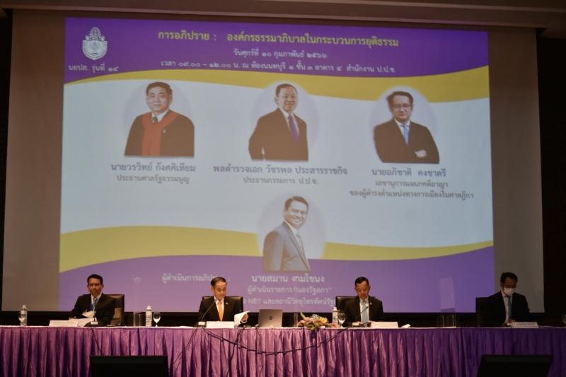 เมื่อวันที่ ๑๐ กุมภาพันธ์ ๒๕๖๖ นายวรวิทย์ กังศศิเทียม ประธานศาลรัฐธรรมนูญ ให้เกียรติเข้าร่วมเป็นวิทยากรอภิปรายในโครงการนักบริหารยุทธศาสตร์การป้องกันและปราบปรามการทุจริตระดับสูง (นยปส.) รุ่นที่ ๑๔ หัวข้อวิชาองค์กรธรรมาภิบาลในกระบวนการยุติธรรม ณ ห้องนนทบุรี ๑ สำนักงาน ป.ป.ช. อำเภอเมืองนนทบุรี จังหวัดนนทบุรี |
