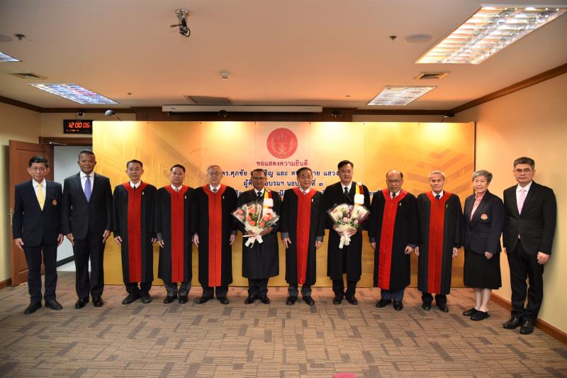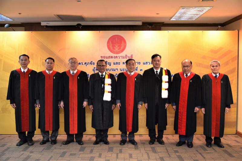 เมื่อวันที่ ๑๖ มีนาคม ๒๕๖๖ นายวรวิทย์ กังศศิเทียม ประธานศาลรัฐธรรมนูญ พร้อมด้วยนายปัญญา อุดชาชน ตุลาการศาลรัฐธรรมนูญ นายอุดม สิทธิวิรัชธรรม ตุลาการศาลรัฐธรรมนูญ นายนภดล เทพพิทักษ์ ตุลาการศาลรัฐธรรมนูญ นายบรรจงศักดิ์ วงศ์ปราชญ์ ตุลาการศาลรัฐธรรมนูญ นายอุดม รัฐอมฤต ตุลาการศาลรัฐธรรมนูญ นางพรทิภา ไสวสุวรรณวงศ์ เลขาธิการสำนักงานศาลรัฐธรรมนูญ และผู้บริหารสำนักงานศาลรัฐธรรมนูญ ร่วมแสดงความยินดีแก่ ดร.ศุภชัย สมเจริญ รองประธานวุฒิสภา คนที่สอง และดร.สมชาย แสวงการ สมาชิกวุฒิสภา เนื่องในโอกาสสำเร็จการศึกษาหลักสูตรปรัชญาดุษฎีบัณฑิต สาขาวิชาการบริหารกระบวนการยุติธรรม คณะนิติศาสตร์ มหาวิทยาลัยธรรมศาสตร์ ณ ห้องประชุม ๔/๓ สำนักงานศาลรัฐธรรมนูญ
