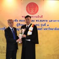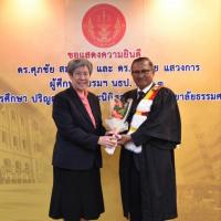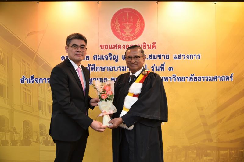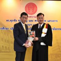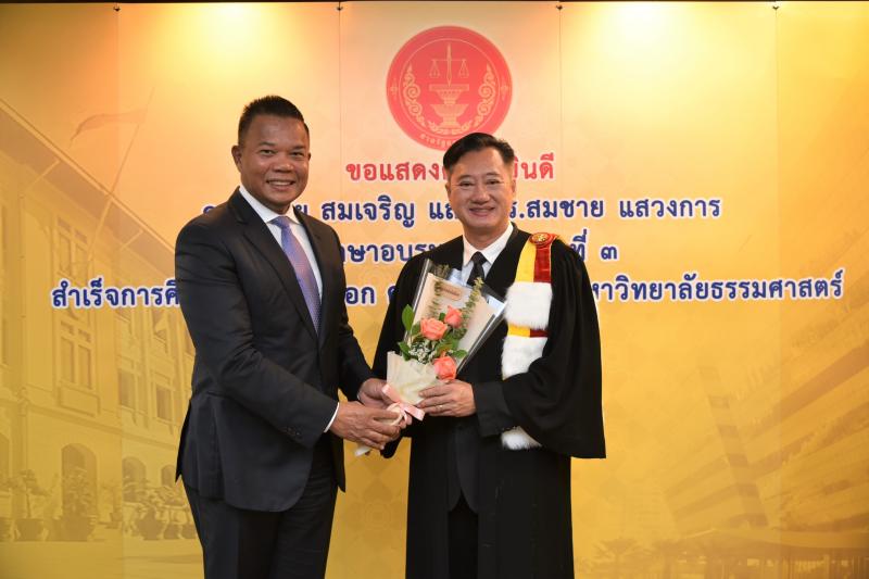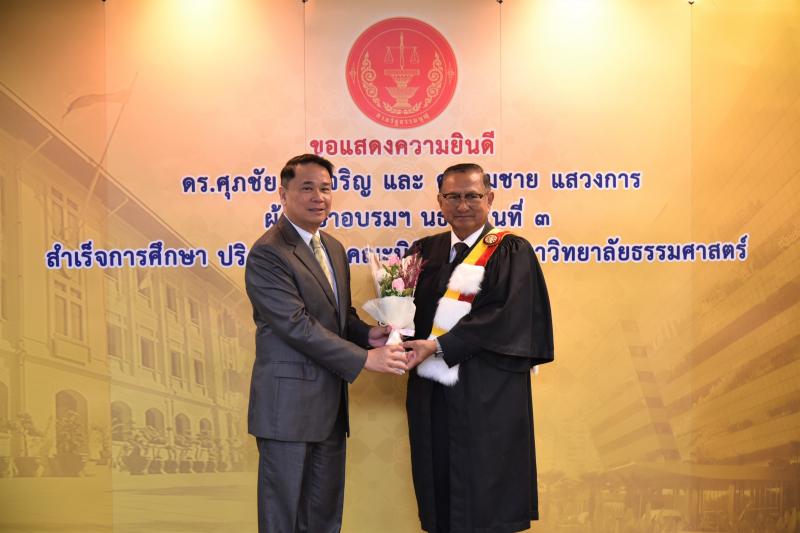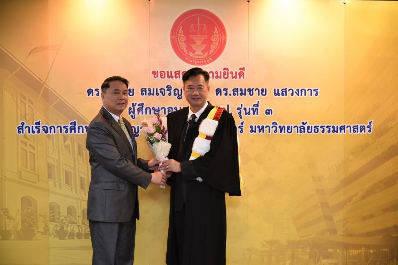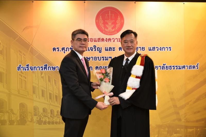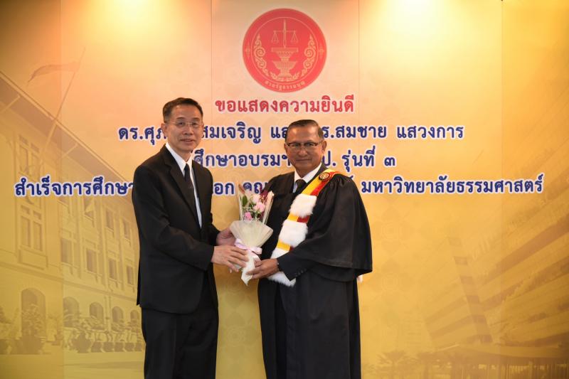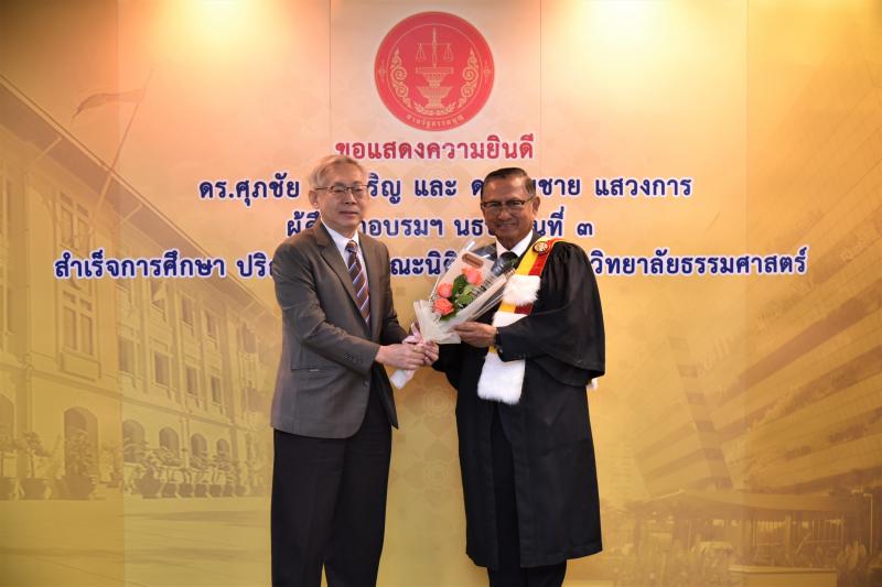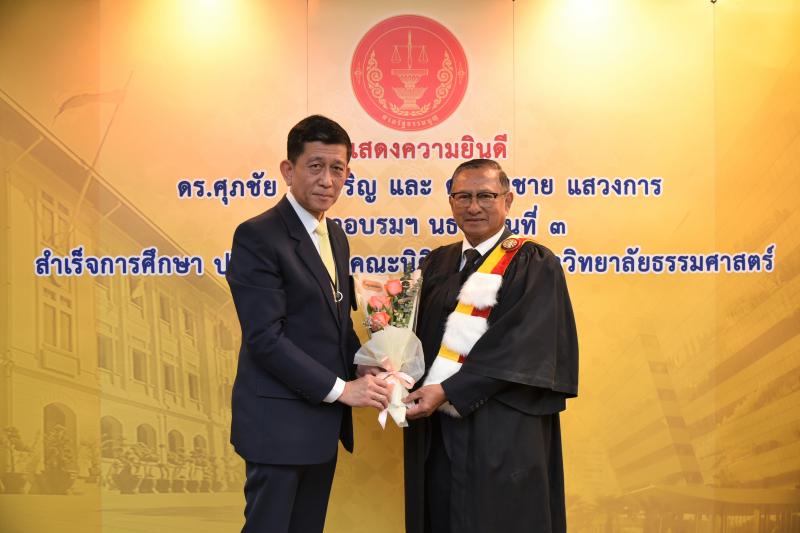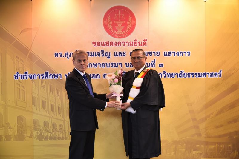 ทั้งนี้ ดร.ศุภชัยฯ และดร.สมชายฯ เป็นผู้สำเร็จการศึกษาอบรมหลักสูตร "หลักนิติธรรมเพื่อประชาธิปไตย” (นธป.) รุ่นที่ ๓ และในหลักสูตรการศึกษาอบรมดังกล่าวได้มีการบันทึกข้อตกลงความร่วมมือทางวิชาการระหว่างสำนักงานศาลรัฐธรรมนูญกับมหาวิทยาลัยธรรมศาสตร์ ซึ่งได้จัดทำขึ้นเพื่อให้เกิดความร่วมมืออย่างเป็นระบบระหว่างสองหน่วยงาน รวมทั้งพัฒนาองค์ความรู้ เทคโนโลยี บุคลากร ตลอดจนส่งเสริมและสนับสนุนการเผยแพร่ความรู้ที่เกี่ยวกับกระบวนการยุติธรรม การคุ้มครองสิทธิและเสรีภาพของประชาชนภายใต้รัฐธรรมนูญ และเสริมสร้างความเชื่อมั่นในกระบวนการยุติธรรมของประเทศ อันจะส่งผลต่อความมั่นคงต่อการปกครองในระบอบประชาธิปไตยอันมีพระมหากษัตริย์ทรงเป็นประมุข ต่อไป |