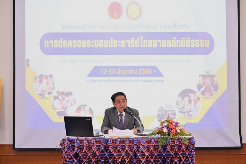 วัตถุประสงค์เพื่อเผยแพร่องค์ความรู้ ส่งเสริมความเข้าใจ ปลูกฝังและสร้างจิตสำนึกให้กับประชาชน เยาวชนและกลุ่มเป้าหมายเกี่ยวกับกฎหมายรัฐธรรมนูญ สิทธิ เสรีภาพ หน้าที่ความรับผิดชอบ กระบวนการพิจารณาของศาลรัฐธรรมนูญ คำวินิจฉัยและคำสั่งของศาลรัฐธรรมนูญ พร้อมสร้างความเชื่อมั่นของประชาชนที่มีต่อศาลรัฐธรรมนูญ ซึ่งโครงการดังกล่าวจัดขึ้นในระหว่างวันที่ ๑๒ - ๑๓ มิถุนายน ๒๕๖๖ ณ มหาวิทยาลัยมหาสารคาม จังหวัดมหาสารคาม |