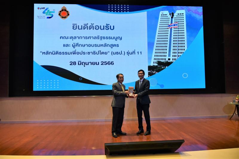 เมื่อวันที่ ๒๘ มิถุนายน ๒๕๖๖ นายวรวิทย์ กังศศิเทียม ประธานศาลรัฐธรรมนูญ ให้เกียรติเป็นหัวหน้าคณะศึกษาดูงานส่วนกลางของผู้ศึกษาอบรมหลักสูตร "หลักนิติธรรมเพื่อประชาธิปไตย” (นธป.) รุ่นที่ ๑๑ ณ กระทรวงพลังงาน และบริษัท ปตท. จำกัด (มหาชน) ในการนี้ นายปัญญา อุดชาชน ตุลาการศาลรัฐธรรมนูญ นายอุดม สิทธิวิรัชธรรม ตุลาการศาลรัฐธรรมนูญ นายบรรจงศักดิ์ วงศ์ปราชญ์ ตุลาการศาลรัฐธรรมนูญ นางพรทิภา ไสวสุวรรณวงศ์ เลขาธิการสำนักงานศาลรัฐธรรมนูญ และผู้บริหารสำนักงานศาลรัฐธรรมนูญ เข้าร่วมในคณะศึกษาดูงานในครั้งนี้ด้วย |