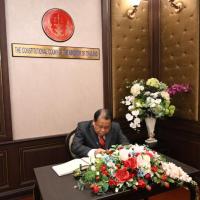 วันพฤหัสบดีที่ ๑๓ มิถุนายน ๒๕๖๗ นายนครินทร์ เมฆไตรรัตน์ ประธานศาลรัฐธรรมนูญ พร้อมด้วยนายจิรนิติ หะวานนท์ นายนภดล เทพพิทักษ์ นายอุดม รัฐอมฤต ตุลาการศาลรัฐธรรมนูญ และผู้บริหารสำนักงานศาลรัฐธรรมนูญ ให้การต้อนรับศาสตราจารย์ ดร. อารีฟ ฮิดายัต (Prof. Dr. Arief Hidayat S.H., M.S.) ตุลาการศาลรัฐธรรมนูญแห่งสาธารณรัฐอินโดนีเซีย และนายระห์หมัต บูดีมัน (H.E. Mr. Rachmat Budiman) เอกอัครราชทูตสาธารณรัฐอินโดนีเซียประจำประเทศไทย เนื่องในโอกาสเข้าเยี่ยมคารวะประธานศาลรัฐธรรมนูญ ณ ห้องรับรอง ชั้น ๓ สำนักงานศาลรัฐธรรมนูญ ทั้งนี้ ผู้บริหารสำนักงานศาลรัฐธรรมนูญและคณะผู้แทนจากศาลรัฐธรรมนูญแห่งสาธารณรัฐอินโดนีเซีย หารือข้อราชการร่วมกัน โดยมีวัตถุประสงค์เพื่อแลกเปลี่ยนประสบการณ์ในการจัดการประชุมใหญ่ (Congress) และการจัดประชุมคณะกรรมการสมาชิก (BoMM) ของสมาคมศาลรัฐธรรมนูญและสถาบันเทียบเท่าแห่งเอเชีย (AACC) ณ ห้องประชุม ๔/๒ ชั้น ๔ สำนักงานศาลรัฐธรรมนูญ อาคารราชบุรีดิเรกฤทธิ์ ศูนย์ราชการเฉลิมพระเกียรติ ๘๐ พรรษา ๕ ธันวาคม ๒๕๕๐ ถนนแจ้งวัฒนะ กรุงเทพมหานคร |