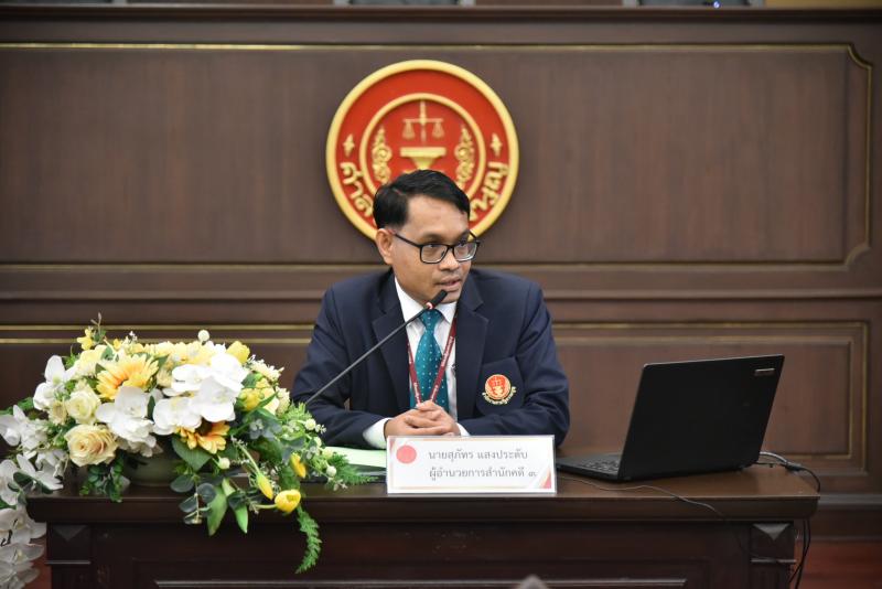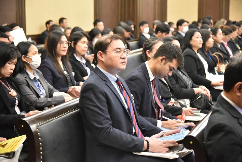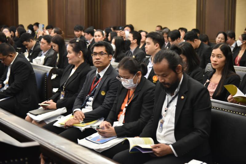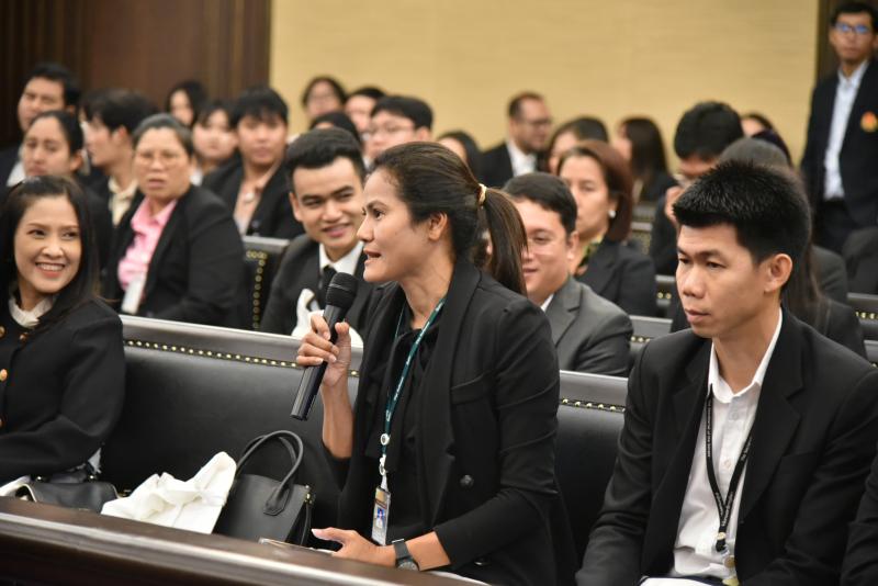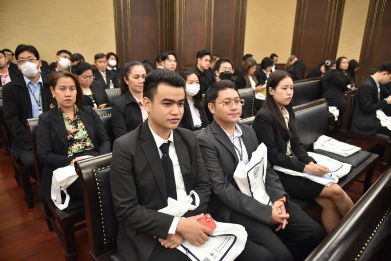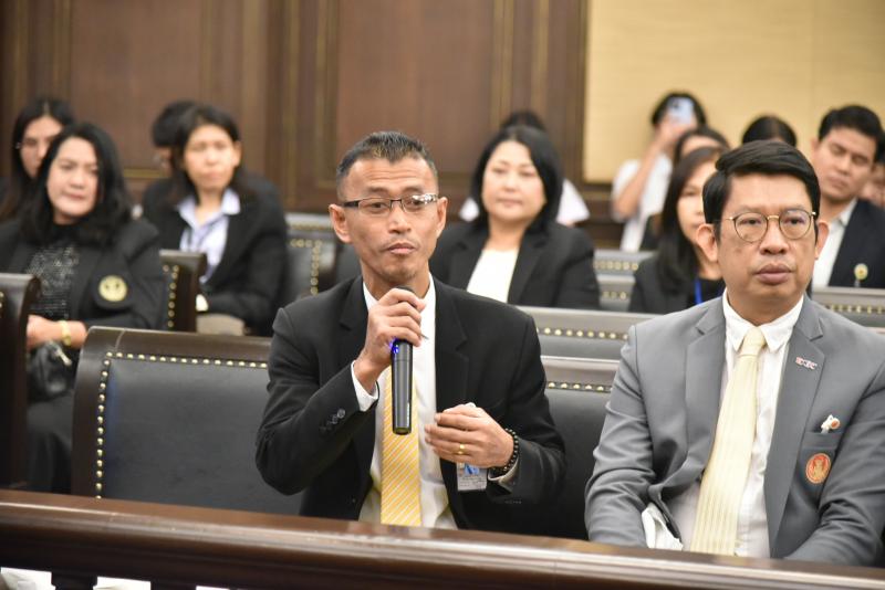 จากนั้นมีการบรรยายหัวข้อ "กระบวนการพิจารณาวินิจฉัยคดีของศาลรัฐธรรมนูญ” โดยนายสุภัทร แสงประดับ ผู้อำนวยการสำนักคดี ๓ ณ