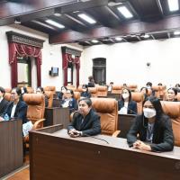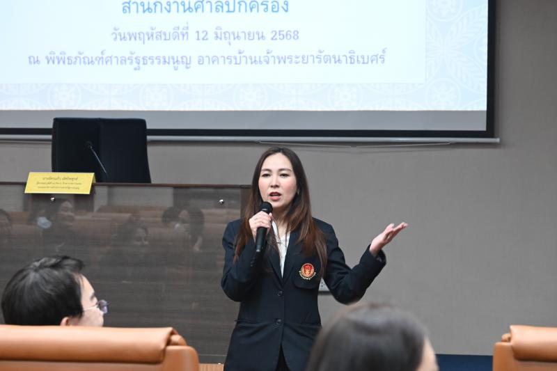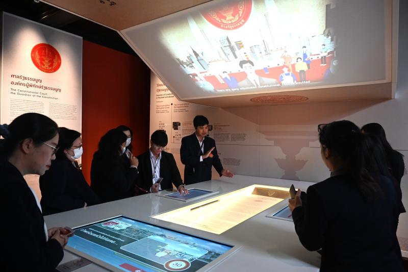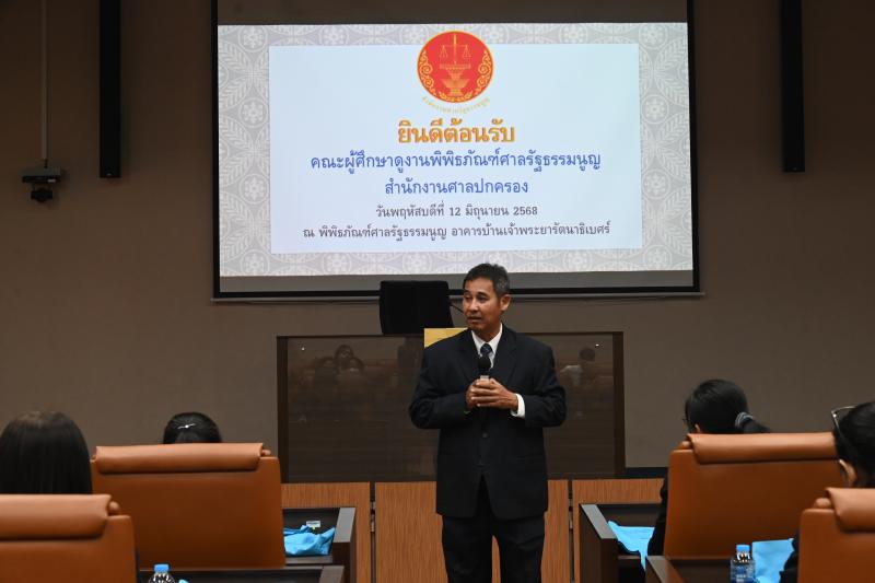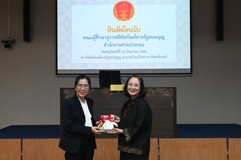 วันพฤหัสบดีที่ ๑๒ มิถุนายน ๒๕๖๘ นางฉัตรแก้ว เลิศไพฑูรย์ รองเลขาธิการสำนักงานศาลรัฐธรรมนูญ กล่าวต้อนรับคณะผู้ศึกษาดูงานจากสำนักงานศาลปกครอง จากนั้นมีการบรรยายหัวข้อ "พิพิธภัณฑ์ศาลรัฐธรรมนูญ” โดยนางดวงชีวัน กาญจนารักษ์ ผู้อำนวยการกลุ่มงานหอสมุด จดหมายเหตุ และพิพิธภัณฑ์ และการบรรยายหัวข้อ "อาคารบ้านเจ้าพระยารัตนาธิเบศร์” โดยนายพาณินทร์ วัชราภัย และนำเยี่ยมชมพิพิธภัณฑ์ศาลรัฐธรรมนูญ โดยผู้อำนวยการกลุ่มงานฯ พร้อมด้วยเจ้าหน้าที่กลุ่มงานหอสมุด จดหมายเหตุ และพิพิธภัณฑ์ ทั้งนี้ มีการศึกษาดูงานในวันที่ ๑๒ และ ๑๓ มิถุนายน ๒๕๖๘ ณ พิพิธภัณฑ์ศาลรัฐธรรมนูญ อาคารบ้านเจ้าพระยารัตนาธิเบศร์ ถนนจักรเพชร เขตพระนคร กรุงเทพมหานคร |
