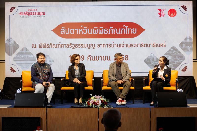 สำหรับโครงการวันพิพิธภัณฑ์ไทย ประจำปี พ.ศ. ๒๕๖๘ มีวัตถุประสงค์เพื่อเป็นการเผยแพร่ประชาสัมพันธ์พิพิธภัณฑ์ศาลรัฐธรรมนูญ เพื่อเป็นแหล่งเรียนรู้ทางด้านกระบวนการยุติธรรม การเมืองการปกครองของไทย อีกทั้งเป็นการส่งเสริมและสร้างสร้างวัฒนธรรมการเรียนรู้พิพิธภัณฑ์อย่างยั่งยืนเพื่อให้ตระหนักถึงความสำคัญและเห็นคุณค่าของพิพิธภัณฑ์และแหล่งเรียนรู้ขององค์กรและหน่วยงานต่าง ๆ ที่สำคัญ ผ่านกิจกรรมสัปดาห์วันพิพิธภัณฑ์ไทย โดยกิจกรรมประกอบด้วย การเสวนา หัวข้อ "Creative city with museum” โดยผู้ช่วยศาสตราจารย์พิเศษ ชาญณรงค์ พุ่มบ้านเช่า นายกสมาคมพิพิธภัณฑ์ไทย กรรมการแห่งชาติว่าด้วยสภาพิพิธภัณฑ์ระหว่างชาติ ผู้ช่วยศาสตราจารย์ ดร.วีรานันท์ ดำรงสกุล อุปนายก นายกสมาคมพิพิธภัณฑ์ไทย และดร. นพเวช บุญมี ผู้อำนวยการโครงการนาทิพย์เกษมและบ้านแป้งฟาร์มสเตย์ จากนั้นเป็นการเยี่ยมชมพิพิธภัณฑ์ศาลรัฐธรรมนูญและภูมิสถาปัตย์อาคารกิจกรรมพิพิธภัณฑ์ศาลรัฐธรรมนูญ โดยเจ้าหน้าที่กลุ่มงานหอสมุด จดหมายเหตุ และพิพิธภัณฑ์ ณ พิพิธภัณฑ์ศาลรัฐธรรมนูญ อาคารบ้านเจ้าพระยารัตนาธิเบศร์ ถนนจักรเพชร แขวงวังบูรพาภิรมย์ เขตพระนคร กรุงเทพมหานคร |