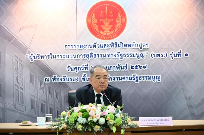 วันศุกร์ที่ ๒๐ กุมภาพันธ์ ๒๕๖๙ ศาสตราจารย์ ดร.นครินทร์ เมฆไตรรัตน์ ประธานศาลรัฐธรรมนูญให้เกียรติเป็นประธานในพิธีเปิดหลักสูตร "ผู้บริหารในกระบวนการยุติธรรมทางรัฐธรรมนูญ" (บยร.) รุ่นที่ ๑ ในการนี้ คณะตุลาการศาลรัฐธรรมนูญ พร้อมด้วยนางสาวร่มปรางค์ สวมประคำ เลขาธิการสำนักงานศาลรัฐธรรมนูญ และผู้บริหารสำนักงานศาลรัฐธรรมนูญ เข้าร่วมในพิธีดังกล่าว จากนั้นมีการบรรยายพิเศษ หัวข้อ หลักนิติธรรมสำหรับผู้บริหาร โดยศาสตราจารย์ ดร.นครินทร์ เมฆไตรรัตน์ ประธานศาลรัฐธรรมนูญ ณ สำนักงานศาลรัฐธรรมนูญ อาคารราชบุรีดิเรกฤทธิ์ ศูนย์ราชการเฉลิมพระเกียรติ ๘๐ พรรษา ๕ ธันวาคม ๒๕๕๐ ถนนแจ้งวัฒนะ กรุงเทพมหานคร |