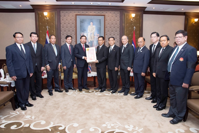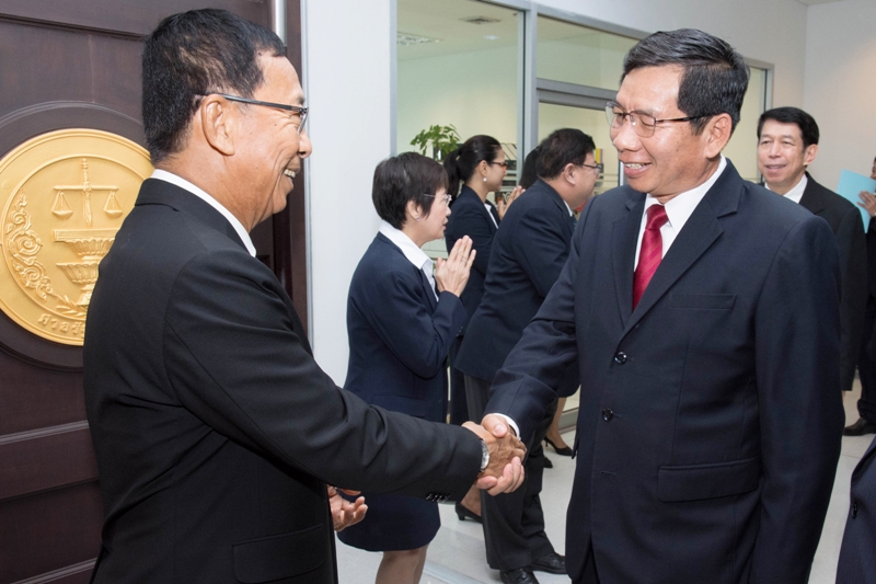 นายนุรักษ์ มาประณีต ประธานศาลรัฐธรรมนูญ พร้อมด้วยตุลาการศาลรัฐธรรมนูญ และนายพิมล ธรรมพิทักษ์พงษ์ เลขาธิการสำนักงานศาลรัฐธรรมนูญ ให้การต้อนรับนายคำพัน สิดทิดำพา ประธานศาลประชาชนสูงสุดแห่งสาธารณรัฐประชาธิปไตยประชาชนลาว และคณะ ในโอกาสเข้าเยี่ยมคารวะประธานศาลรัฐธรรมนูญและรับฟังการบรรยายสรุปในหัวข้อ "ศาลรัฐธรรมนูญแห่งราชอาณาจักรไทย” โดยมีนายเชาวนะ ไตรมาศ ที่ปรึกษาด้านวิชาการสำนักงานศาลรัฐธรรมนูญ เป็นวิทยากรบรรยาย เมื่อวันที่ ๒ มิถุนายน ๒๕๖๐ ณ ห้องรับรอง ชั้น ๓ สำนักงานศาลรัฐธรรมนูญ อาคารราชบุรีดิเรกฤทธิ์ ศูนย์ราชการเฉลิมพระเกียรติ ๘๐ พรรษา ๕ ธันวาคม ๒๕๕๐ ถนนแจ้งวัฒนะ กรุงเทพมหานคร |