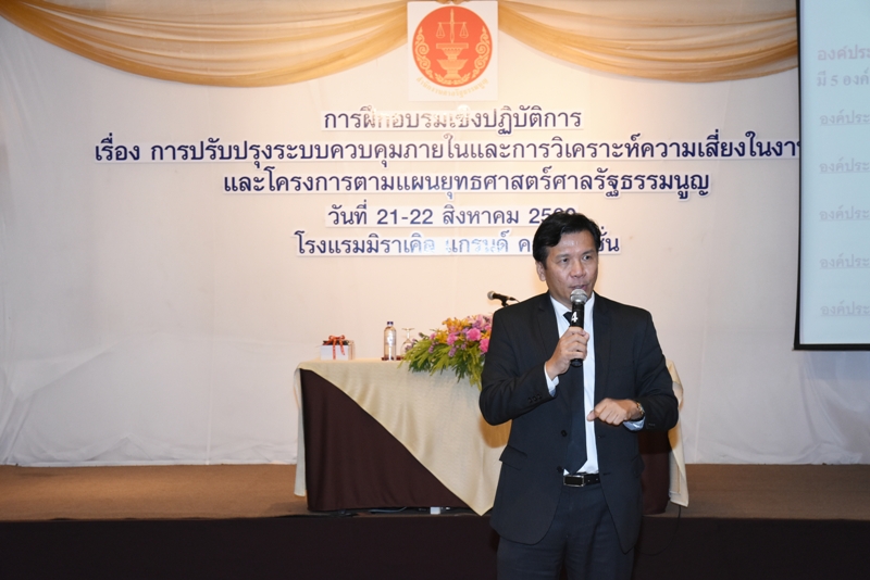 สำนักงานศาลรัฐธรรมนูญจัดโครงการอบรมเชิงปฏิบัติการ เรื่อง "การปรับปรุงระบบควบคุมภายในและการวิเคราะห์ความเสี่ยงในงานและโครงการตามแผนยุทธศาสตร์ศาลรัฐธรรมนูญ” ซึ่งได้รับเกียรติจากนายปัญญา อุดชาชน ตุลาการศาลรัฐธรรมนูญ เป็นประธานในพิธีเปิดโครงการดังกล่าว และจัดให้มีการบรรยายในหัวข้อ "การปรับปรุงระบบควบคุมภายใน ในการขับเคลื่อนยุทธศาสตร์” โดยคุณนเรศ สถิตยพงศ์ อาจารย์พิเศษสถาบันบัณฑิตพัฒนบริหารศาสตร์ ให้เกียรติมาเป็นวิทยากรบรรยาย เมื่อวันที่ ๒๑ – ๒๒ สิงหาคม ๒๕๖๐ ณ โรงแรมมิราเคิล แกรนด์ ถนนแจ้งวัฒนะ กรุงเทพมหานคร |