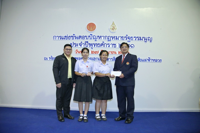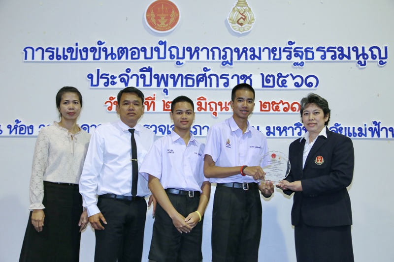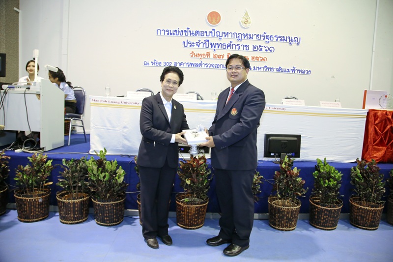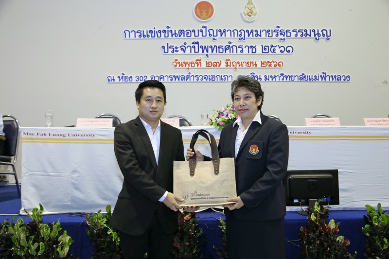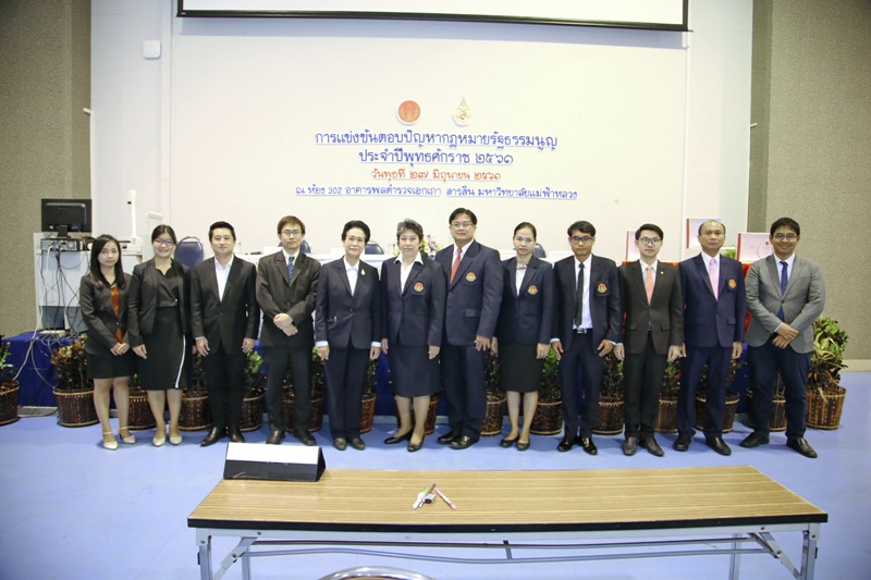 เมื่อวันที่ ๒๗ มิถุนายน ๒๕๖๑ สำนักงานศาลรัฐธรรมนูญร่วมกับมหาวิทยาลัยแม่ฟ้าหลวง จัดโครงการแข่งขันตอบปัญหากฎหมายรัฐธรรมนูญ ระดับมัธยมศึกษาตอนปลาย โดยได้รับเกียรติจากนางอัจฉรียา อนันตพงศ์ ผู้อำนวยการสถาบันรัฐธรรมนูญศึกษา เป็นผู้แทนจากสำนักงานศาลรัฐธรรมนูญในการมอบรางวัลชนะเลิศให้แก่โรงเรียนที่ชนะแข่งขันในครั้งนี้ สำหรับผลการแข่งขันตอบปัญหากฎหมายรัฐธรรมนูญ รางวัลชนะเลิศ ได้แก่ โรงเรียนจุนวิทยาคม รางวัลรองชนะเลิศอันดับ ๑ ได้แก่ โรงเรียนบุญวาทย์วิทยาลัย และรางวัลรองชนะเลิศอันดับ ๒ ได้แก่ โรงเรียนแม่จันวิทยาคม ณ อาคารพลตำรวจเอกเภา สารสิน มหาวิทยาลัยแม่ฟ้าหลวง จังหวัดเชียงราย |