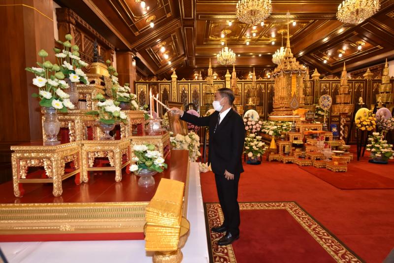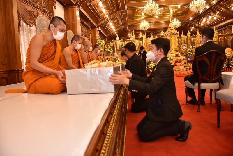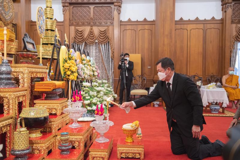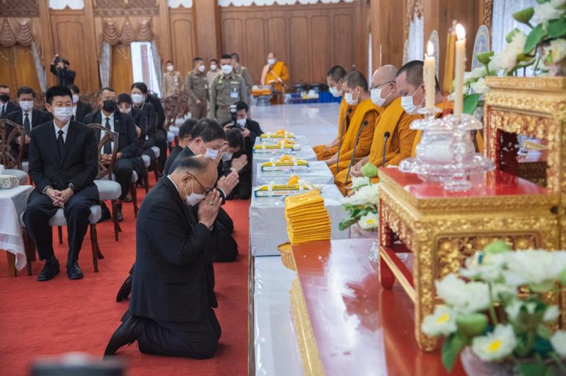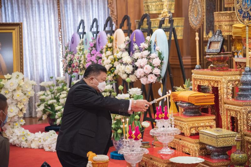 ณ ห้องบำเพ็ญกุศล ชั้น 2 อาคาร 100 ปี ซึ่งได้มรณภาพเมื่อวันที่ 15 มีนาคม 2565 โดยนายวรวิทย์ กังศศิเทียม ประธานศาลรัฐธรรมนูญ เป็นประธานในพิธีจุดธูปเทียนบูชาพระรัตนตรัย นายศักดิ์ชัย ยอดวานิช ประธานผู้ศึกษาอบรม นธป. 10 ถวายพวงมาลัยสักการะหน้าโกศ ดร. ปัญญา อุดชาชน ตุลาการศาลรัธฐรรมนูญ ถวายเครื่องไทยธรรม และนายเชาวนะ ไตรมาศ เลขาธิการสำนักงานศาลรัฐธรรมนูญ ถวายผ้าไตรจีวร |