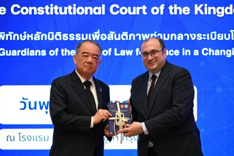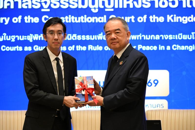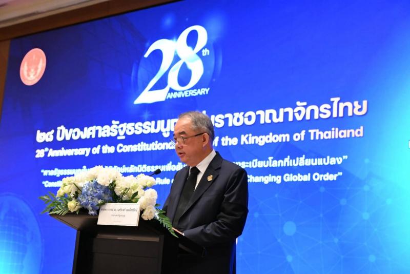 กล่าวได้ว่าบทบาทของศาลรัฐธรรมนูญแห่งราชอาณาจักรไทยในเวทีโลกที่ผ่านมาเป็นที่ประจักษ์ต่อสายตาศาลรัฐธรรมนูญทั่วโลกและสถาบันเทียบเท่าฯ ตอกย้ำให้เห็นว่าเมื่อเริ่มต้นปีพุทธศักราช 2569 บทบาทในเวทีโลกของศาลรัฐธรรมนูญแห่งราชอาณาจักรไทยยังคงได้รับความไว้ใจอย่างต่อเนื่องด้วยการได้เข้าร่วมประชุมสำนักงานฝ่ายบริหารของการประชุมตุลาการศาลรัฐธรรมนูญโลก ครั้งที่ 23 (The 23rd meeting of the Bureau of the World Conference on Constitutional Justice : 23rd meeting of the Bureau of WCCJ) ในฐานะผู้แทนภูมิภาคเอเชียและโอเชียเนียเป็นครั้งแรก เมื่อวันที่ 23 มีนาคม 2569 ณ เมืองเวนิส สาธารณรัฐอิตาลี การประชุมนี้ถือเป็นโอกาสสำคัญที่ศาลรัฐธรรมนูญแห่งราชอาณาจักรไทยได้ร่วมกำหนดทิศทาง นโยบายและมาตรฐานความยุติธรรมทางรัฐธรรมนูญในระดับโลกเพื่อยกระดับการรักษาสันติภาพตามแนวทางของระเบียบโลก สำหรับการจัดการสัมมนาทางวิชาการเนื่องในวาระ 28 ปี ของศาลรัฐธรรมนูญแห่งราชอาณาจักรไทย ในปีพุทธศักราช 2569 นี้ ได้เริ่มดำเนินการตั้งแต่วันที่ 7 เมษายน 2569 โดยจัดให้มีการบรรยายพิเศษภายใต้ความร่วมมือทางด้านวิชาการ (MOU) ระหว่างสำนักงานศาลรัฐธรรมนูญและมหาวิทยาลัยธรรมศาสตร์ หัวข้อ "Contemporary Challenges of Constitutional Justice” ซึ่งได้รับเกียรติจากท่านวิทยากรผู้ทรงคุณวุฒิจากต่างประเทศ โดย Ms. Simona Granata-Menghini, Director and Secretary of the Venice Commission และการบรรยายพิเศษ หัวข้อ"International Standards of Constitutional Review and the Global Dialogue on Constitutional Justice: The Role of the Venice Commission of the Council of Europe and the World Conference on Constitutional Justice” โดย Mr. Vahe Demirtshyan, Legal Advisor at the Venice Commission ณ มหาวิทยาลัยธรรมศาสตร์ ท่าพระจันทร์ และการสัมมนาทางวิชาการฯ ในวันที่ 8 เมษายน 2569 ได้จัดให้มีการบรรยายพิเศษ หัวข้อ "Constitutional Courts as Guardians of the Rule of Law for Peace in Changing Global Order ” ซึ่งได้รับเกียรติจากท่านวิทยากรผู้ทรงคุณวุฒิจากต่างประเทศและตุลาการศาลรัฐธรรมนูญแห่งราชอาณาจักรไทย ประกอบด้วย Prof. Dr. Askarjon Gafurov, Deputy Chairman of the Constitutional Court of the Republic of Uzbekistan Ms. Simona Granata-Menghini, Director and Secretary of the Venice Commission และท่านนภดล เทพพิทักษ์ ตุลาการศาลรัฐธรรมนูญ และจัดเวทีการอภิปรายร่วมกัน หัวข้อ "ศาลรัฐธรรมนูญในฐานะผู้พิทักษ์หลักนิติธรรมเพื่อสันติภาพท่ามกลางระเบียบโลกที่เปลี่ยนแปลง” โดยได้รับเกียรติจากท่านวิทยากรผู้ทรงคุณวุฒิ ประกอบด้วย ศาสตราจารย์ ดร.ไชยันต์ ไชยพร อาจารย์พิเศษ คณะรัฐศาสตร์ จุฬาลงกรณ์มหาวิทยาลัย รองศาสตราจารย์ ดร.ภูริ ฟูวงศ์เจริญ คณบดีคณะรัฐศาสตร์ มหาวิทยาลัยธรรมศาสตร์ รองศาสตราจารย์ ดร.อมรรัตน์ กุลสุจริต คณบดีคณะนิติศาสตร์ สถาบันบัณฑิตพัฒนบริหารศาสตร์ ผู้ช่วยศาสตราจารย์ ดร.รณกรณ์ บุญมี รองคณบดีฝ่ายบริหารและนวัตกรรม คณะนิติศาสตร์ มหาวิทยาลัยธรรมศาสตร์ โดยมี คุณเสาวลั